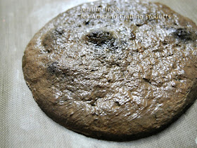 To begin, we need to create a mold for the cookie. I used a medium sized chocolate chip cookie, but you could choose whatever cookie type you would like to recreate. I first sealed the cookie with a clear coat spray in an effort to make it less ‘crummy’ and easier to work with. After that dried thoroughly, I mixed the mold putty and gently pressed the cookie into the putty to create my mold.